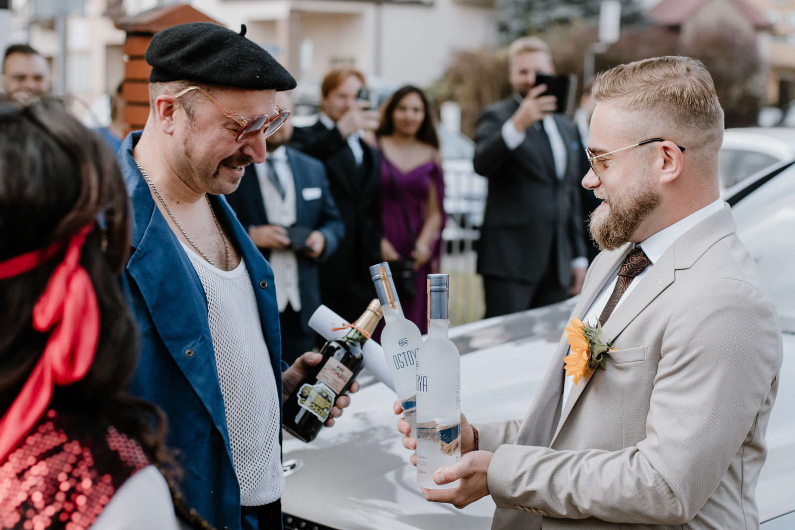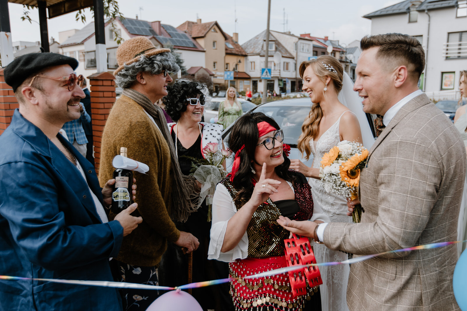 Na blogu rzadko publikujemy zdjęcia bram. Bywa, że jakiś lokalny pijaczek staje na środku drogi ze skradzionym wcześniej kwiatkiem w dłoni. Żąda opłaty w postaci butelki wódki. Ale przy bramie, którą mieli do pokonania Sylwia i Maciek, na chwilę się zatrzymamy. Było zabawnie, kolorowo i z pomysłem. Wszystko za sprawą Klubu Morsów, do którego należy Pani Barbara – wspominana już dzisiaj Mama Sylwii.