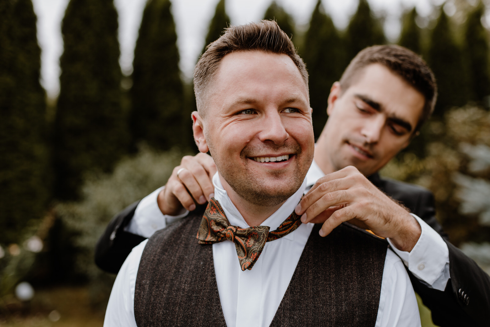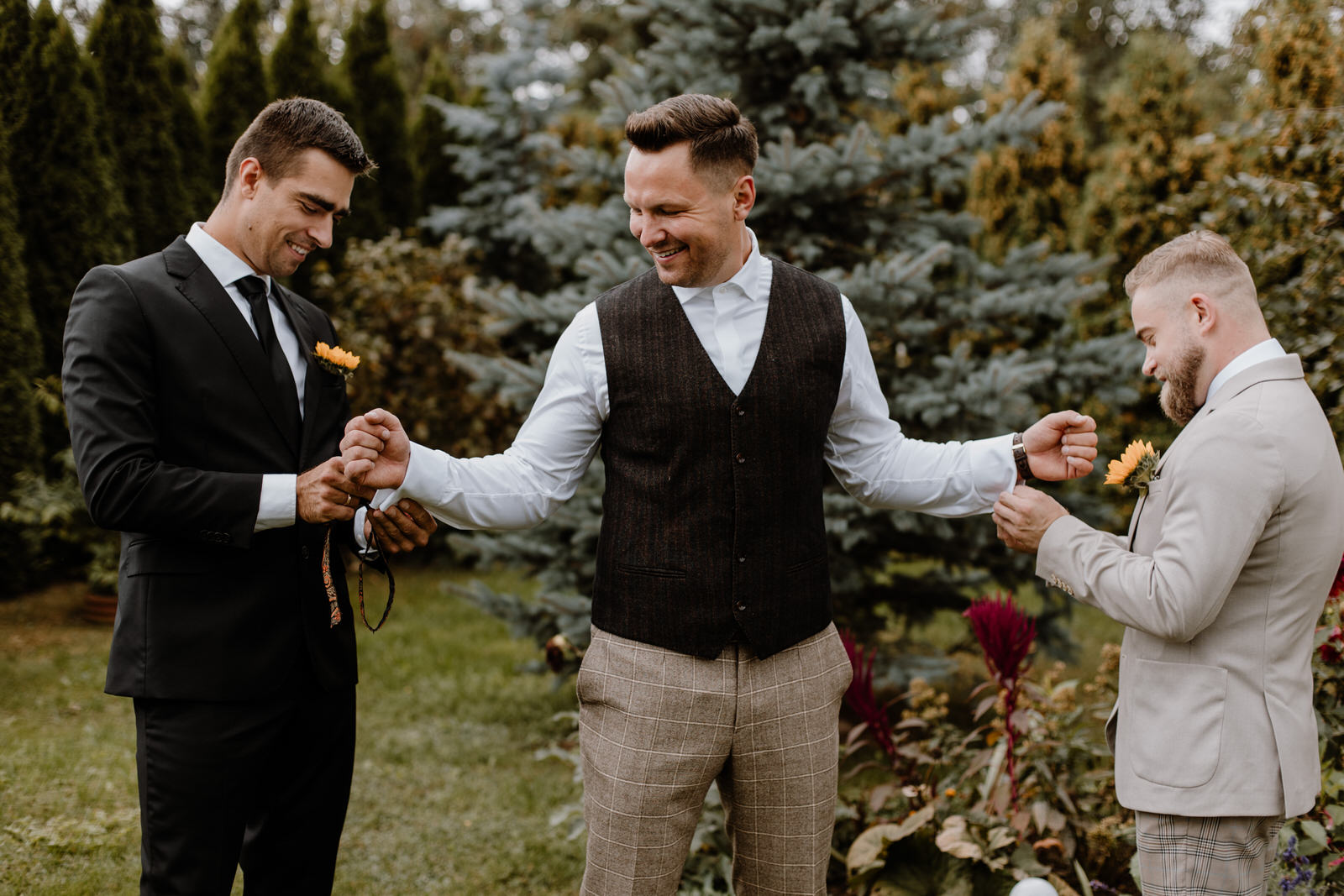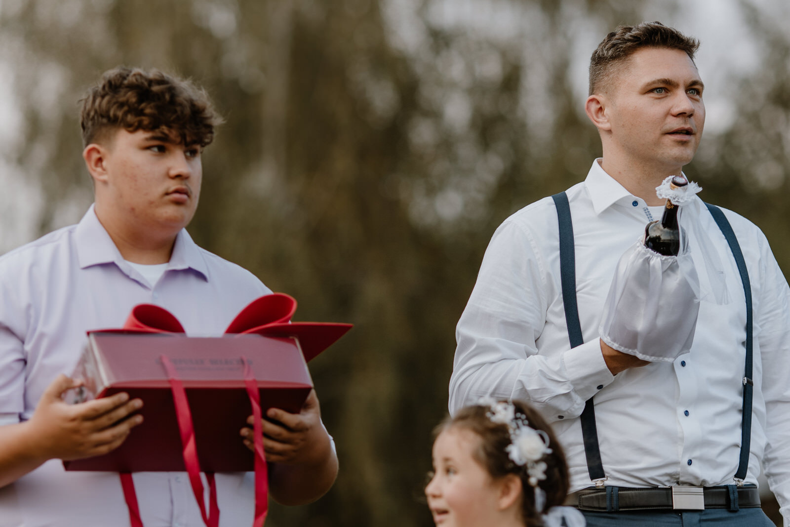 Maciejowi w „ostaniej drodze” kawalerskiego szlaku towarzyszyły najbliższe osoby. W tych ważnych chwilach nie mogło obok niego zabraknąć kumpli, którzy zawsze byli jego wsparciem. Wszystkiemu ukradkiem przypatrywali się rodzice. Dla nich to również było wyjątkowe wydarzenie. Ślub syna to historyczna chwila w rodzinie. W takich sytuacjach, fotograf i kamerzysta na wesele zbierają cenne ujęcia do swojego reportażu. Nasz zespół zwraca szczególną uwagę na gesty, uśmiechy i drobne wpadki, które dzieją się dookoła. Całość buduje piękny obraz wspomnień dnia ślubu.