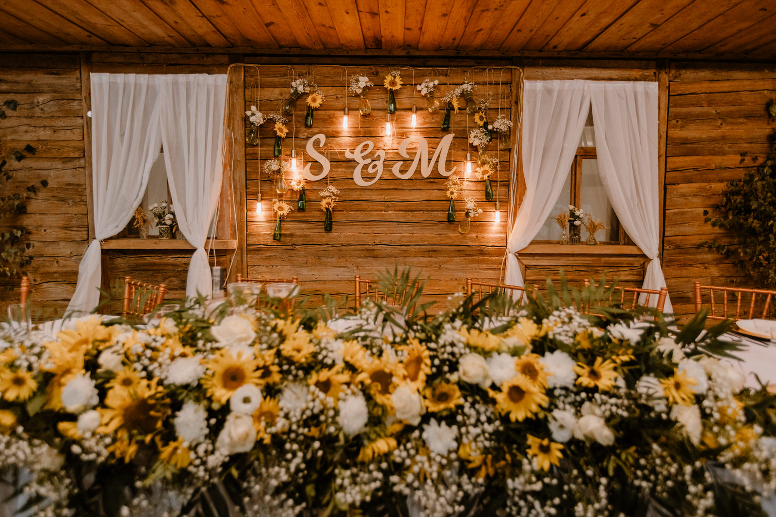Słonecznik jest motywem tego wesela. Tego ślubu i tego dnia! Dekoracje na stołach wzbudzają zachwyt gości. Na naszym filmie i zdjęciach widać rozmach i piękno jakie Sylwia z Maćkiem zafundowali gościom. Silaine to zdecydowanie świetne miejsce na klimat boho i rustykalne wesela.