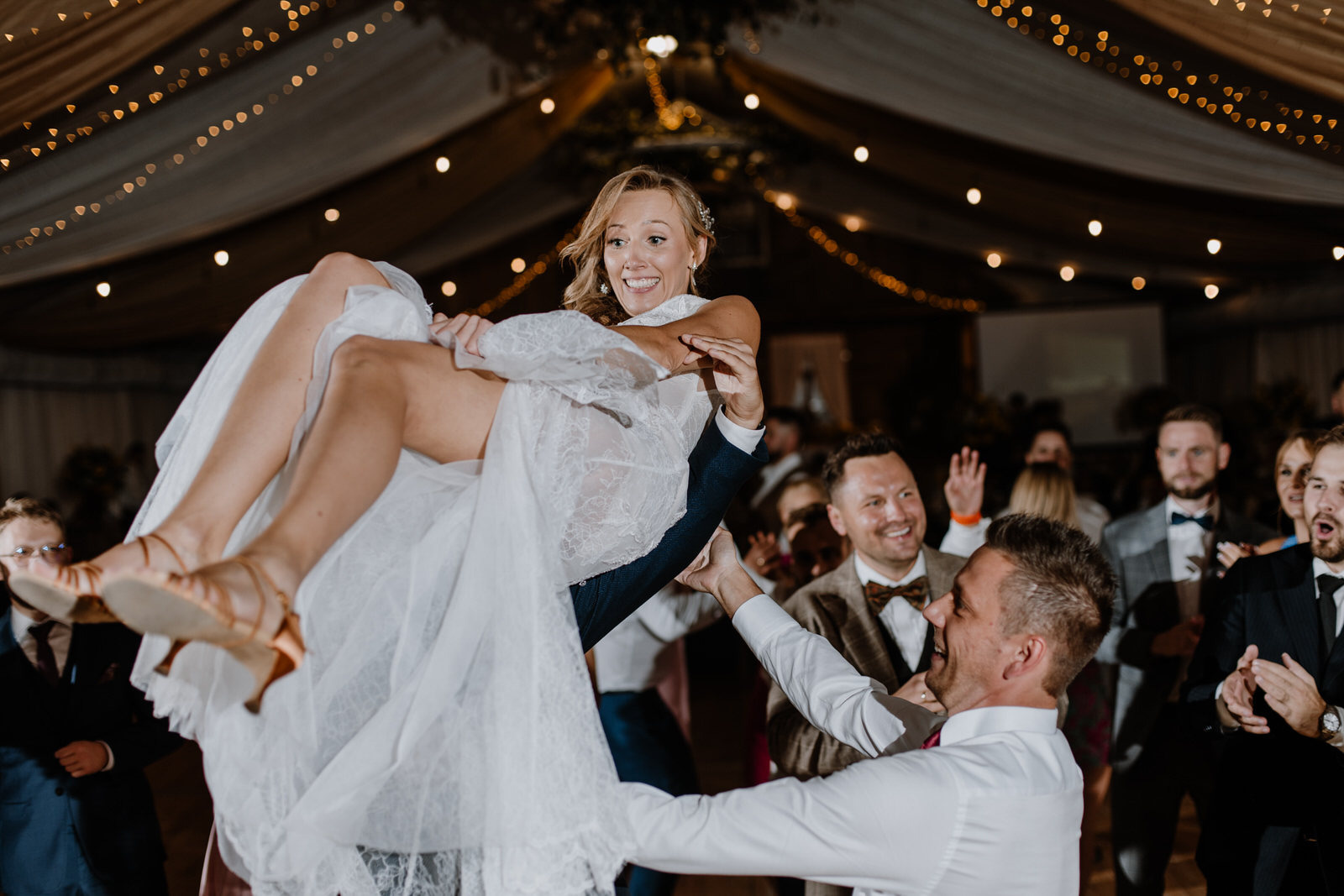 Wesele Sylwi i Maćka było wydarzeniem epickim. Na pewno duża w tym zasługa gości. Bliscy i przyjaciele stworzyli niesamowitą atmosferę do zabawy. Para Młoda czuła się swobodnie i też korzystała z tego wieczoru ile się dało. Piękne to było wydarzenie. Materiał filmowy i zdjęciowy jaki zebraliśmy na tej imprezie posłużył za fundament rewelacyjnego reportażu. Pamiętajcie, że na końcu tego wpisu czeka na Was film. Tam dopiero się dzieje!